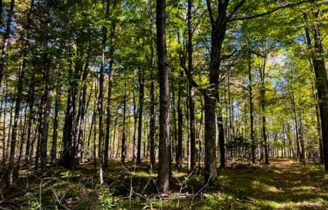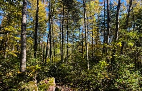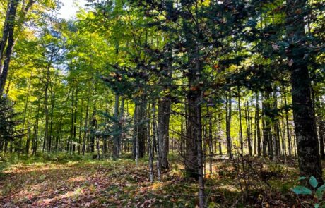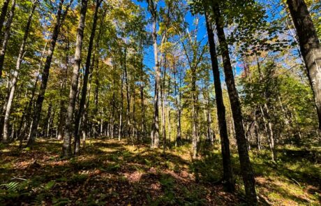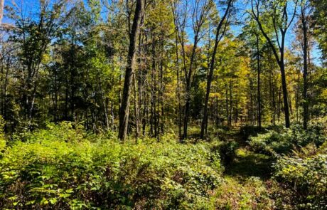 The property features sloping topography east toward the Wolf River valley, with multiple drainages extending from the property to the Wolf River. Habitat diversity throughout the property includes northern hardwoods and hemlock flats to thick bottom cedar/black ash low lands that parallel the Wolf River.