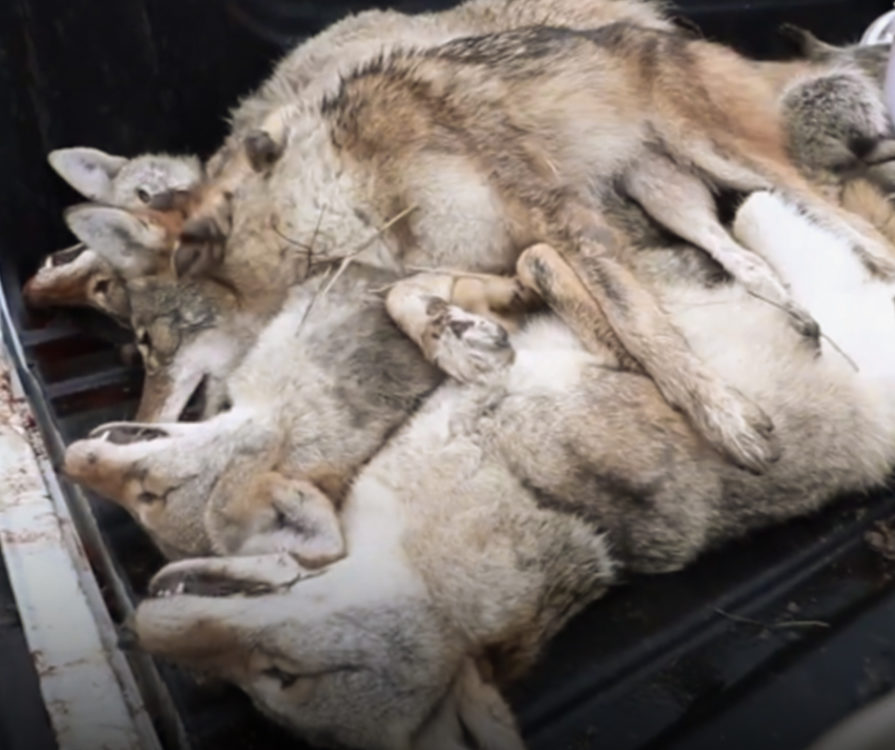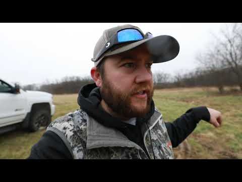 We’re in this big pasture. On this side, we’ve got just a nice thick draw that runs for probably a half a mile. We found a dead deer right here in this little brush pile. Coyotes had tore it up, and I told Brian “we definitely need to go down here”. If you can see it, we’ve got a double and we’ve got a cow trail, perfect, that goes up this pond and that shed up there, but it comes out of this. Our wind was blowing right up to all the cover where we thought the coyotes were going to be. They obviously winded it, came up the cow trail and we set a flat right here just to get a coyote to stop. That’s normally the setup that’s going to catch second. I set up a dirt hole right here, we actually had a fresh coyote turd right here on the edge of this cow trail. I’m going to say it’s a big male and that one’s a young female, probably a breeding pair. Pretty darn cool. These kids are getting to see a show today.