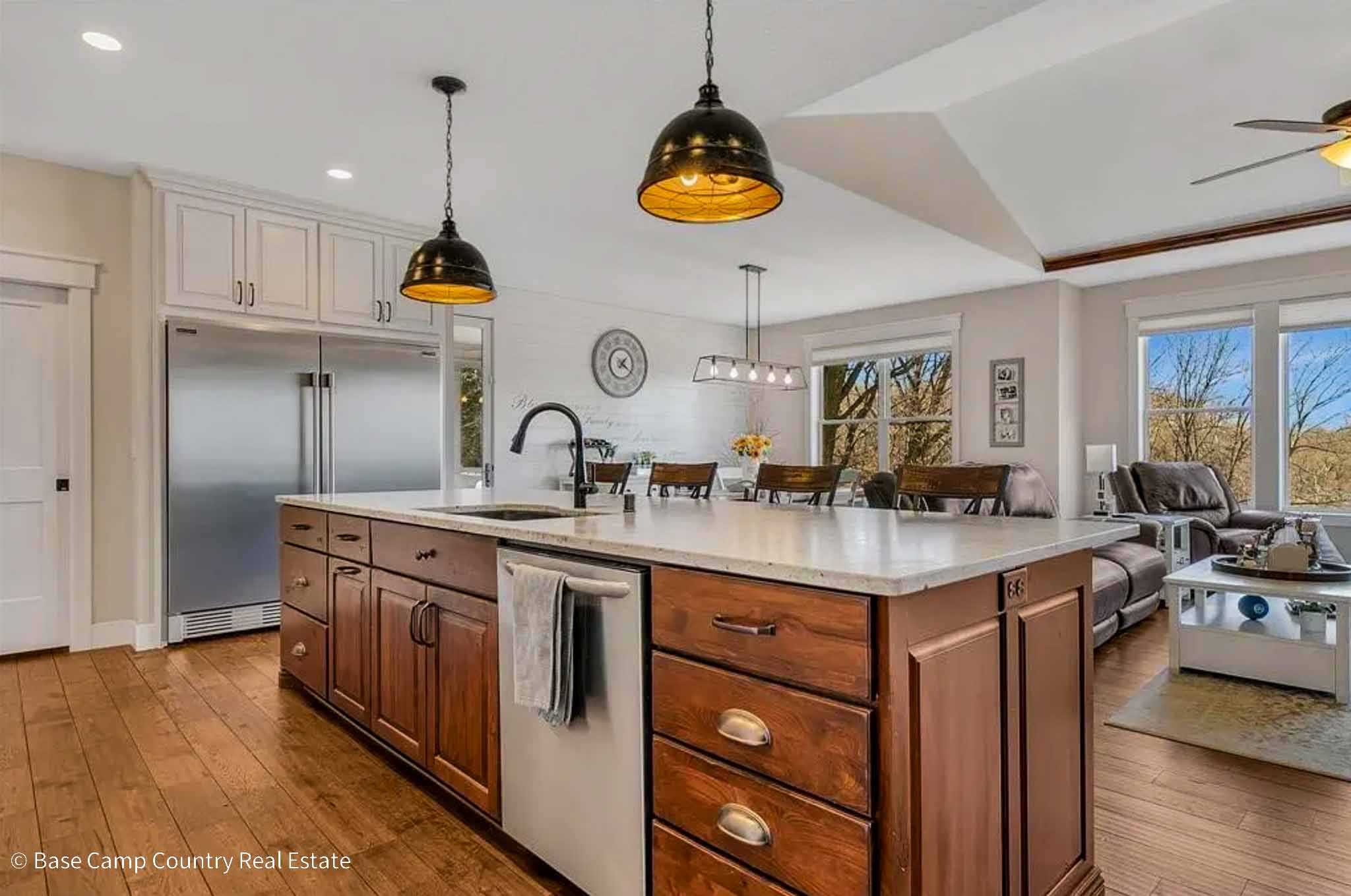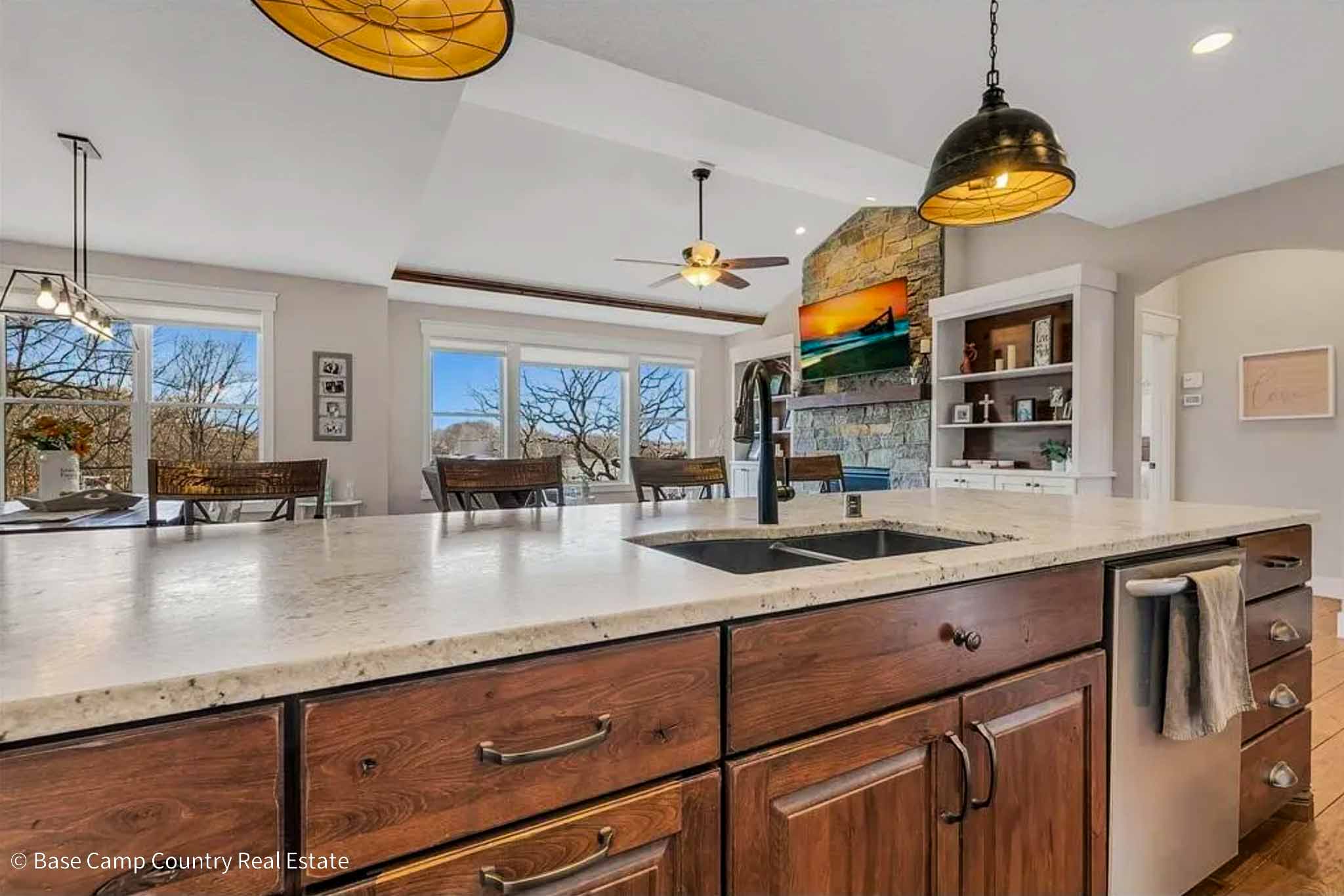 Carver County, Minnesota – Land For Sale | Experience elevated lakeview living in this thoughtfully designed executive walkout rambler, ideally set on a .31 acre homesite overlooking Carl Krey Lake in Victoria. Surrounded by high end homes and natural beauty, this property offers a rare combination of privacy, scenery, and convenience within the Twin Cities metro. One of the most compelling features of this home is the setting. With no backyard neighbors in sight, the property overlooks a serene stretch of wooded wetlands and water, creating a truly private, panoramic backdrop. The adjacent city owned land enhances the sense of space and seclusion, offering a setting that feels far more expansive than the lot itself. The current owners have thoughtfully cleared portions of the landscape and created access to the water, allowing for quiet enjoyment by canoe or kayak. Inside, the home showcases expansive, light filled spaces with quality craftsmanship and oak hardwood floors throughout the main level. The great room is anchored by a floor to ceiling stone fireplace, custom built ins, and a wall of windows that frame the breathtaking views. Marvin windows and fully automated window treatments provide both efficiency and everyday comfort. The kitchen serves as a true centerpiece, designed for both function and gathering. It features an abundance of custom cabinetry, granite countertops, an oversized island, walk in pantry, double ovens, and a commercial grade refrigerator, all while seamlessly connecting to the great room and dining spaces. Designed for main level living, the home offers a private primary suite, dedicated office, laundry, and well-appointed living spaces all on one level. The walkout lower level expands the home with a spacious family room, wet bar, three additional bedrooms, and two bathrooms, ideal for guests or entertaining. Outdoor living is equally inviting, with a screened porch, fire pit, and open yard positioned to capture the peaceful water views. The fully finished three stall garage, complete with a separate workshop area, adds flexibility and functionality. A standout rambler in a market dominated by two and three story homes, this property offers a rare opportunity to enjoy luxury, privacy, and true main level living in one of the areas most desirable communities.