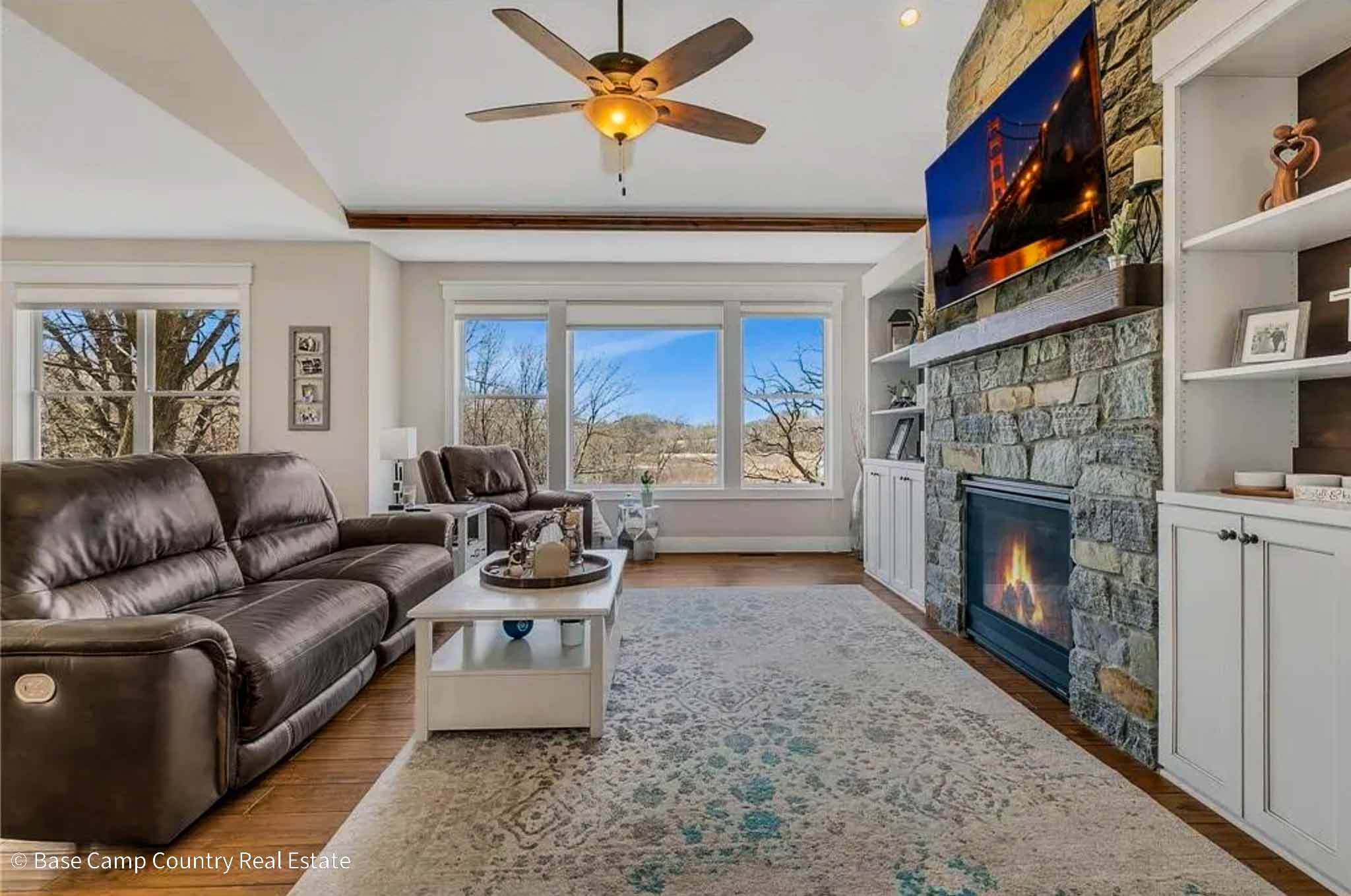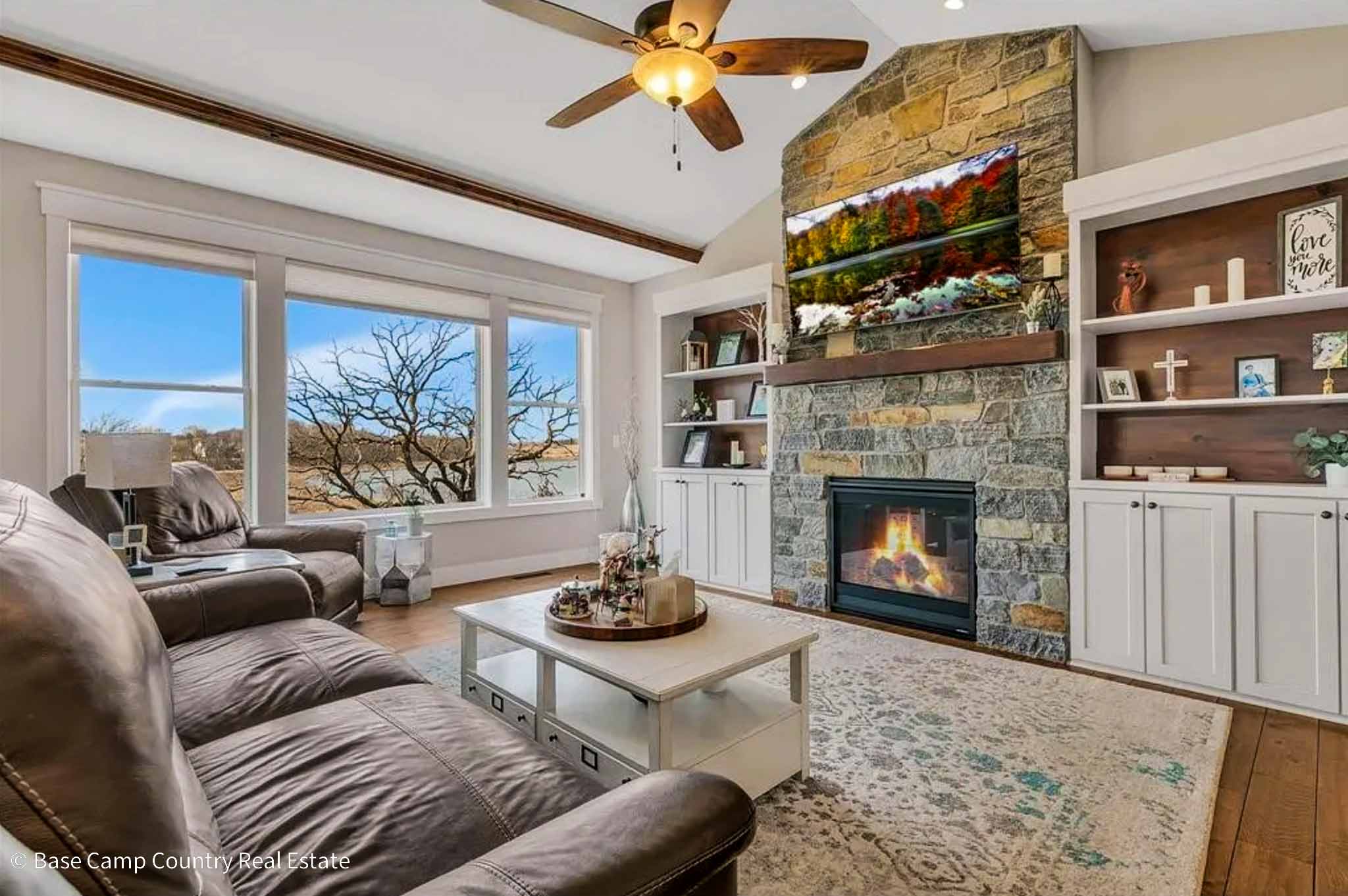 Floor to ceiling Stone Fireplace