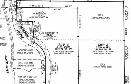 Clark County, Wisconsin – Land For Sale | Available is this 4.185 acre surveyed lot (Lot 4) with the Black River frontage just up river from Lake Arbutus. Access to the lake would be by canoe or kayak. Enjoy this beautiful lot by building your dream getaway! The Black River offers great fishing opportunities and this property is located minutes from Hatfield, Bruce Mound winter recreational area, Levis Mound walking and Mtn. biking trails and ATV accessible to the local and state trails. Also available to purchase is, Lot 3 (5.556 acres) and the Lots 1 & 2 with an updated 2bd-1bth home will all the comforts of home. Call today for more information!