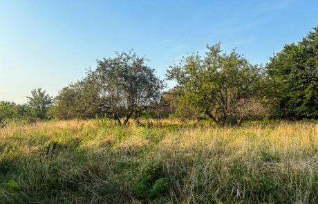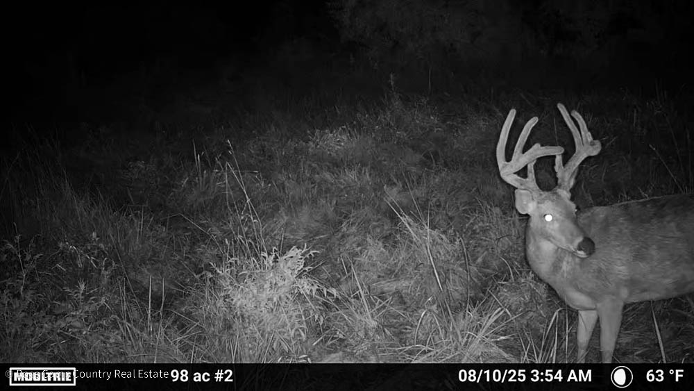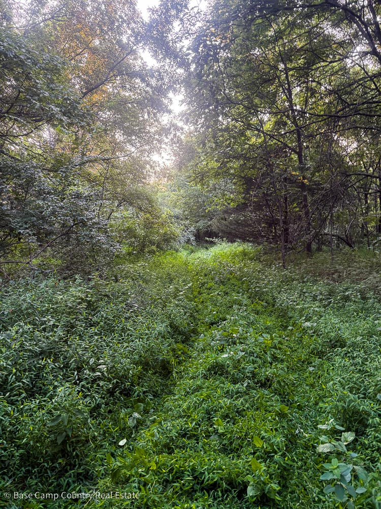 Adding to its appeal, the land includes native grasses and a productive apple orchard, providing a natural food source for wildlife. Two stocked ponds and Halltown Creek run through the property, offering additional natural attractions for deer and enhancing the overall habitat.