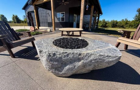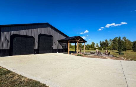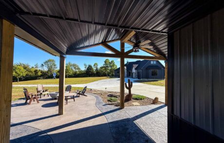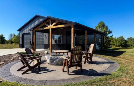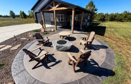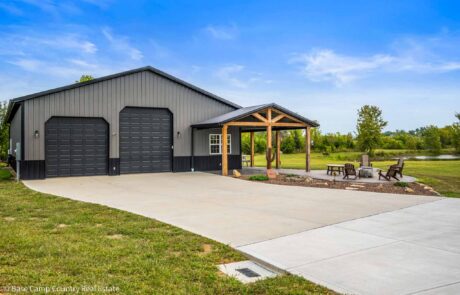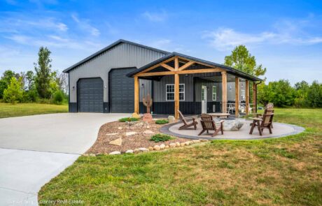 60X 40 pole barn with concrete floors, water and power with apartment / mother-in-law suite. Custom colored concrete patio with gas fire pit and land scaping.