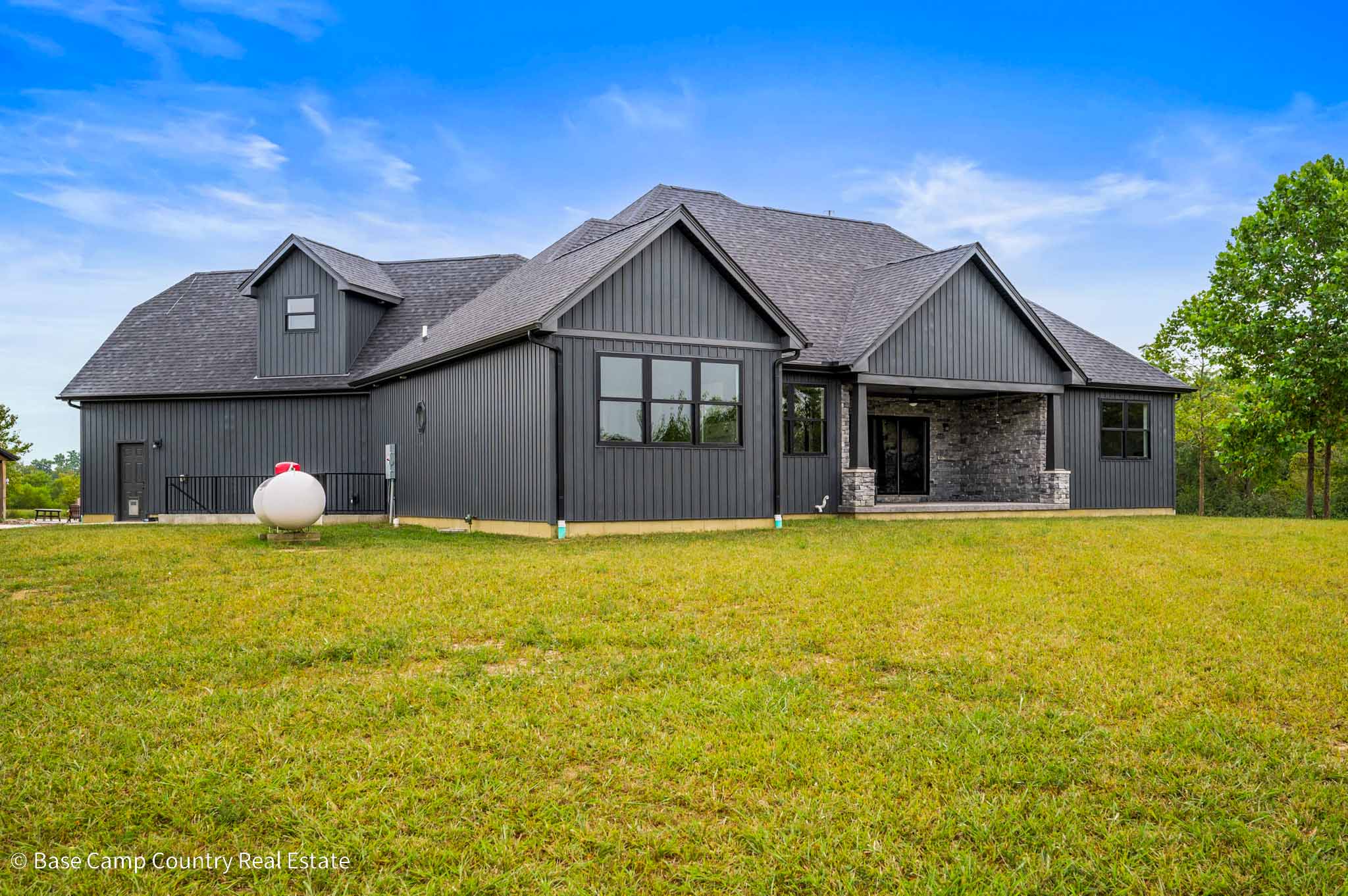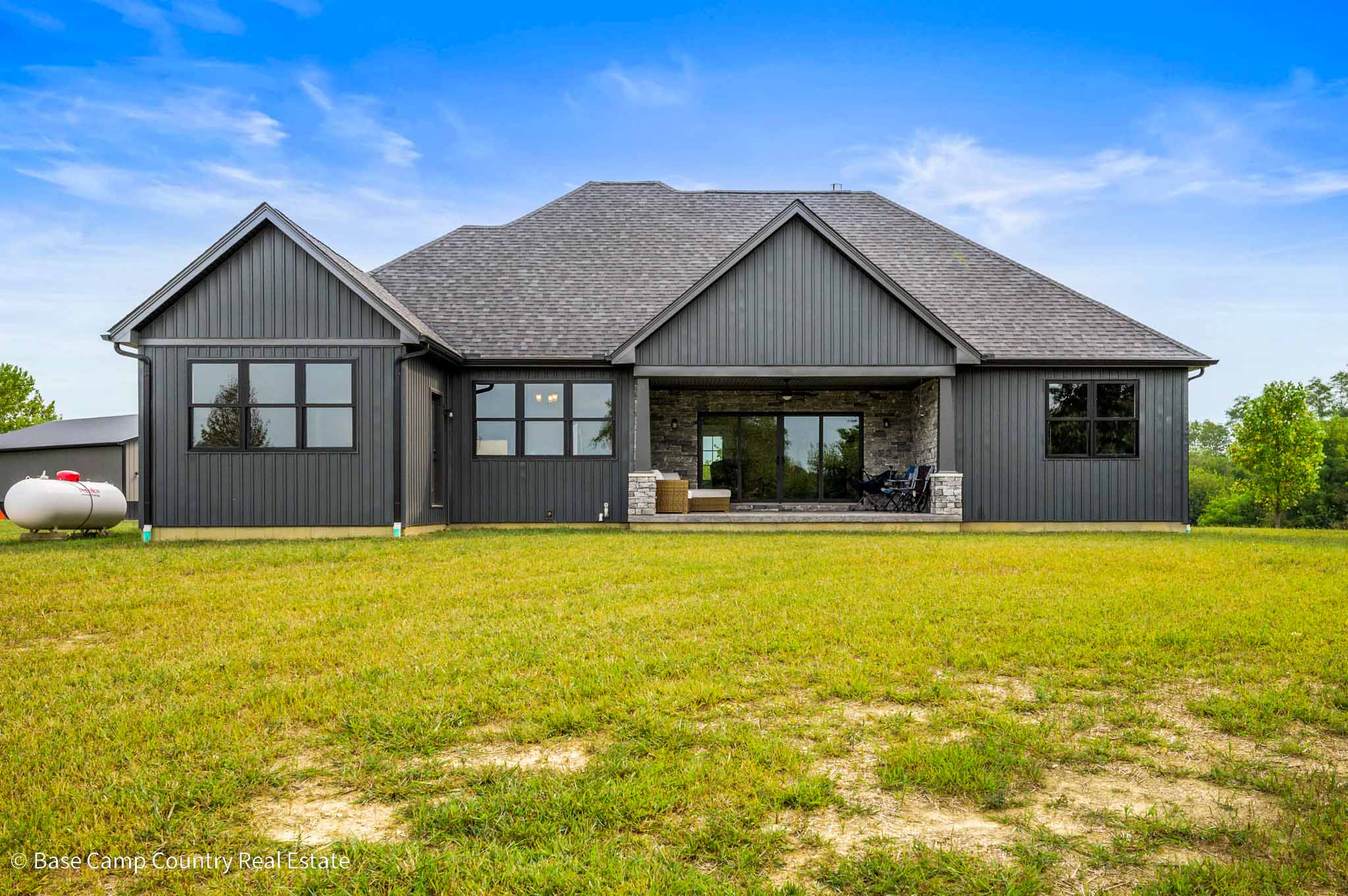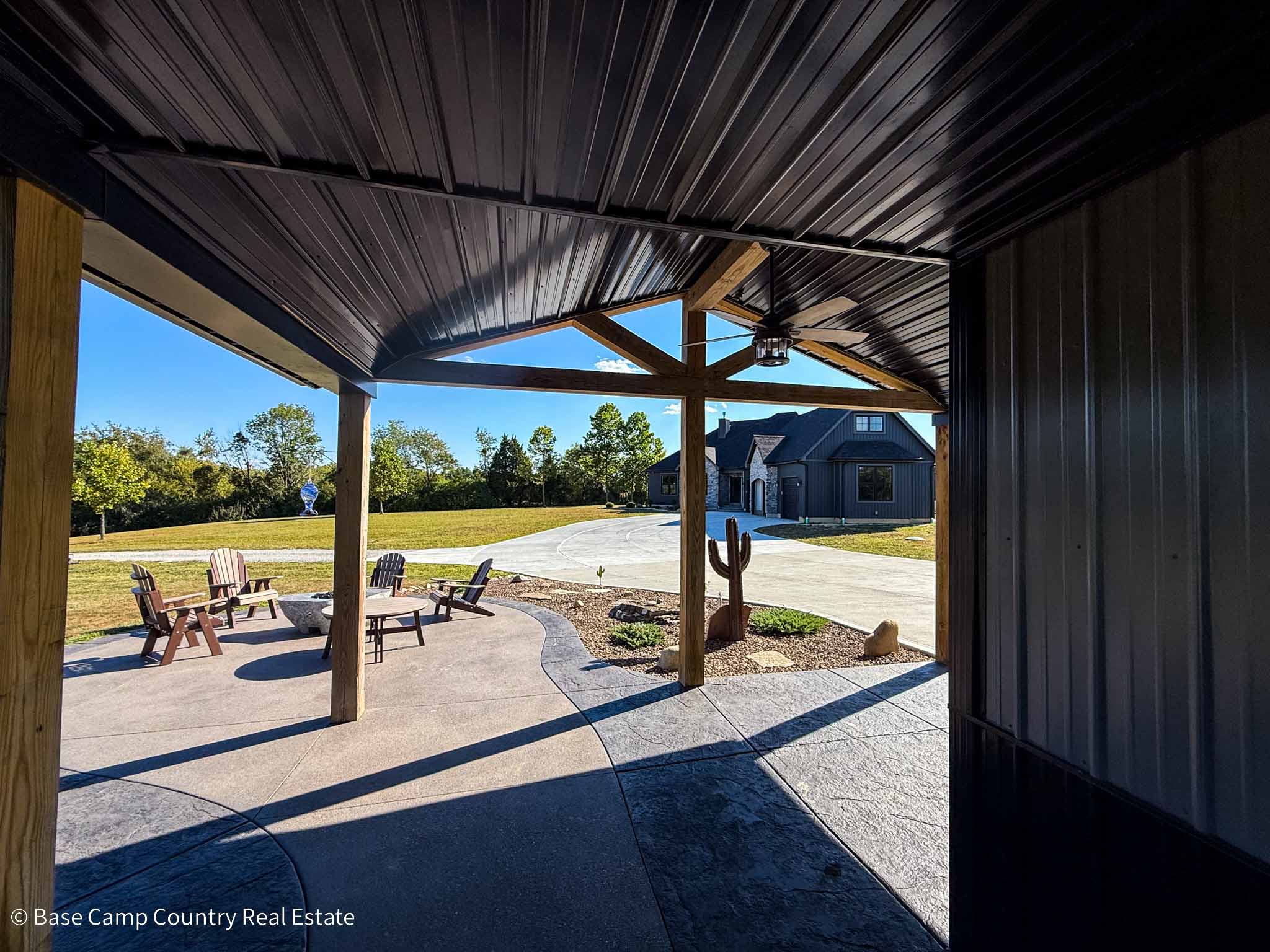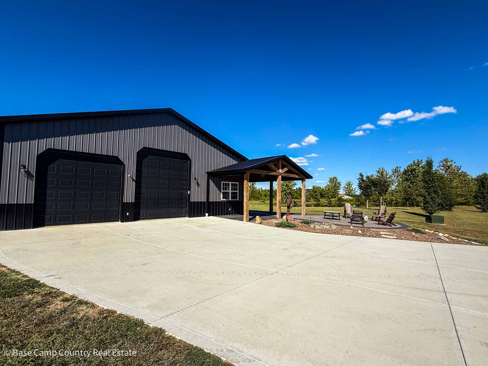 60X 40 pole barn with concrete floors, water and power with apartment / mother-in-law suite. Custom colored concrete patio with gas fire pit and land scaping.