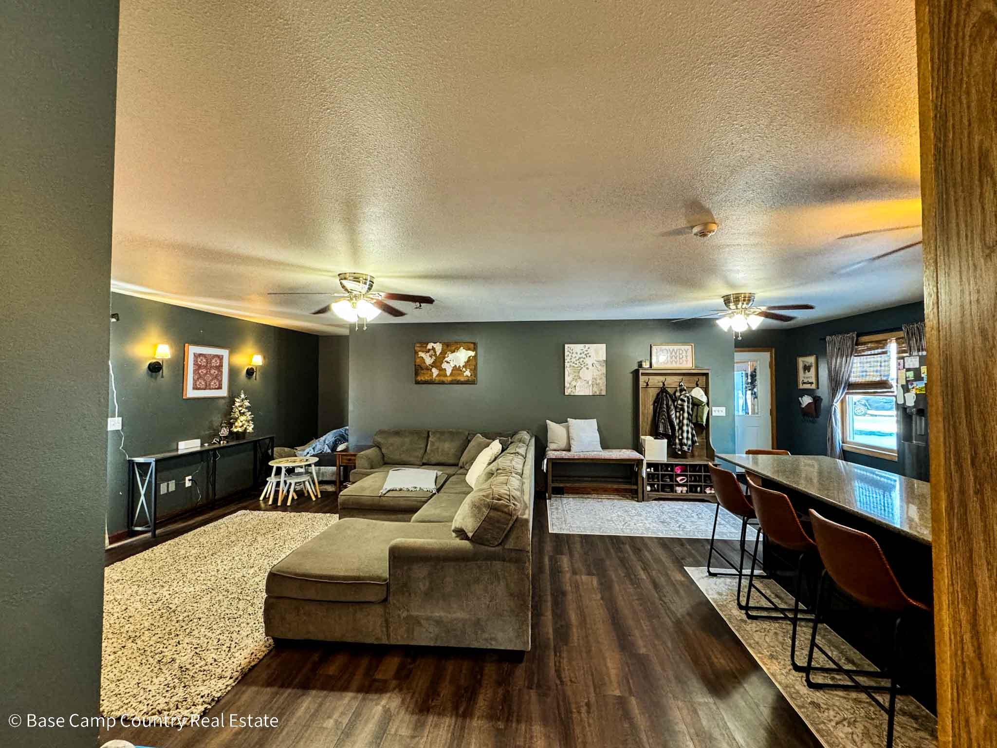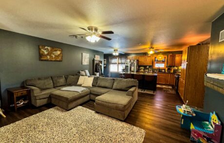 The thoughtfully designed main level features 1,344 sq. ft. of living space, highlighted by a spacious 18′ x 12′ kitchen with luxury vinyl plank flooring. The primary suite serves as a true retreat, featuring a private full bathroom and durable LVP flooring. A second main-level bedroom boasts elegant hardwood floors and its own egress window, ensuring a bright and airy atmosphere. For added convenience, the main floor includes a dedicated laundry/nursery space.