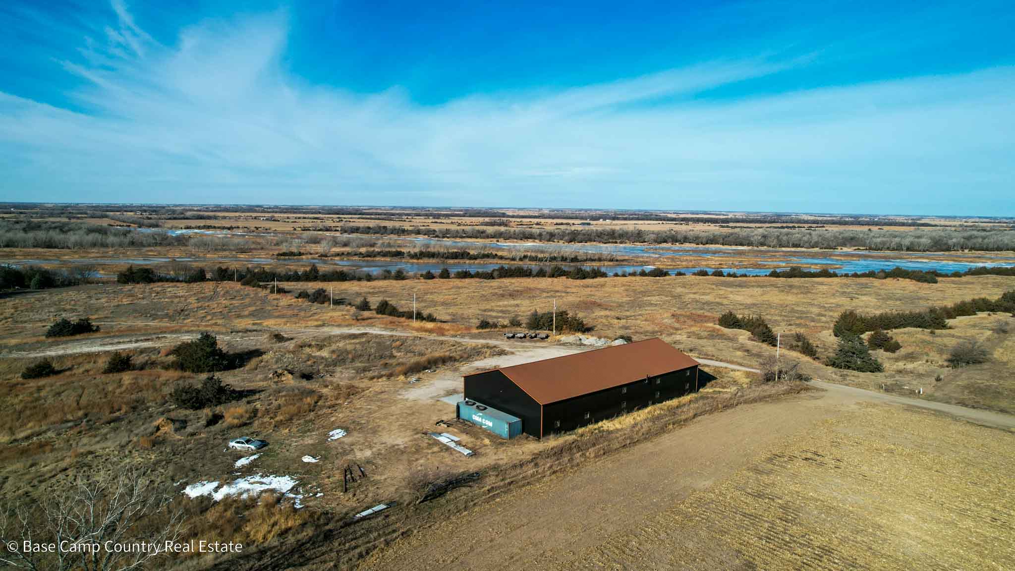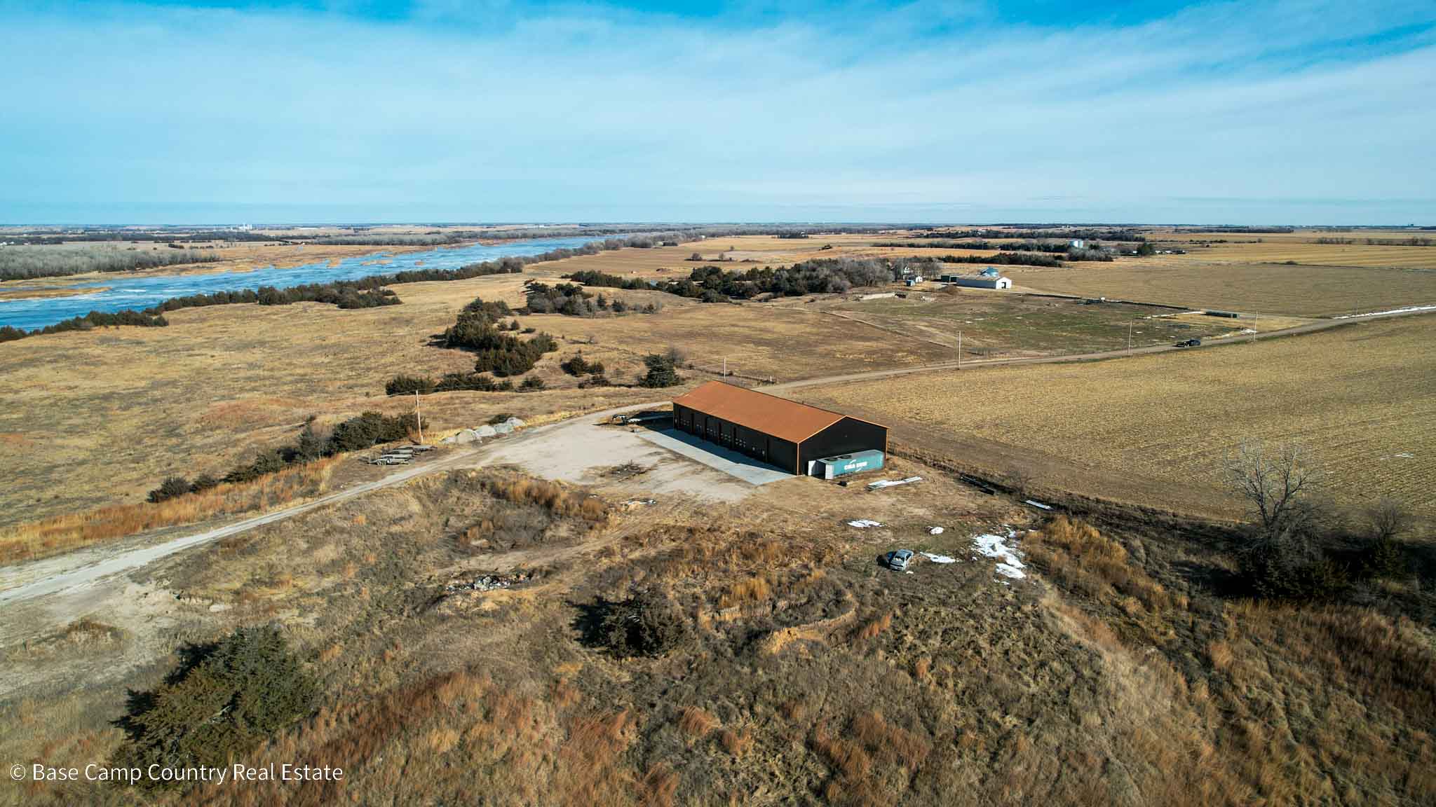 Hamilton County, Nebraska – Land For Sale | Looking for the ultimate blank slate? This 3-acre Hamilton County property combines stunning Platte River views with a large, high-end building ready for your vision.