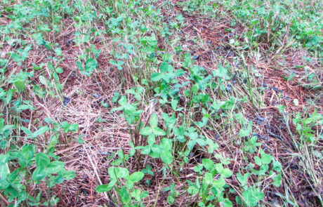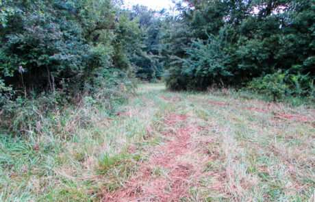North of the crescent moon hay field is a 1.25 bottom food plot. This plot was drilled the same day as the north plot with the same mix with added white clover. The white clover will make this plot shine on this bottom soil type. Another great spot for early and mid archery seasons and sometimes into the gun seasons!