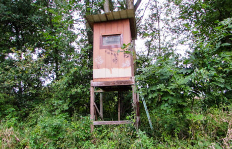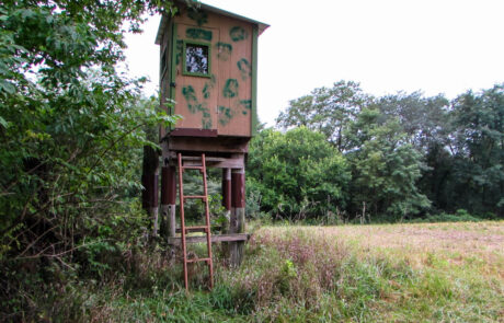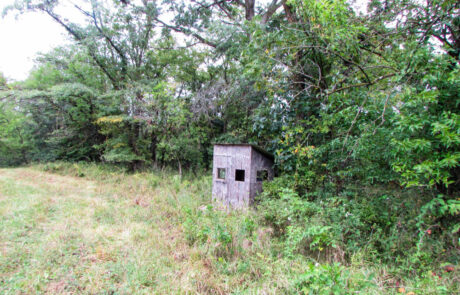 The west side of the farm has an acre field that would be an ideal food plot. The field has timber surrounding the plot, a stocked pond to the east, and a blind at the entrance of the potential plot.