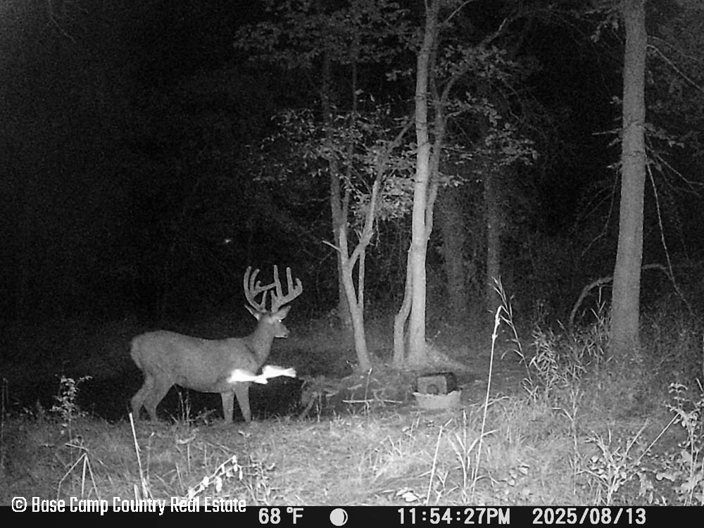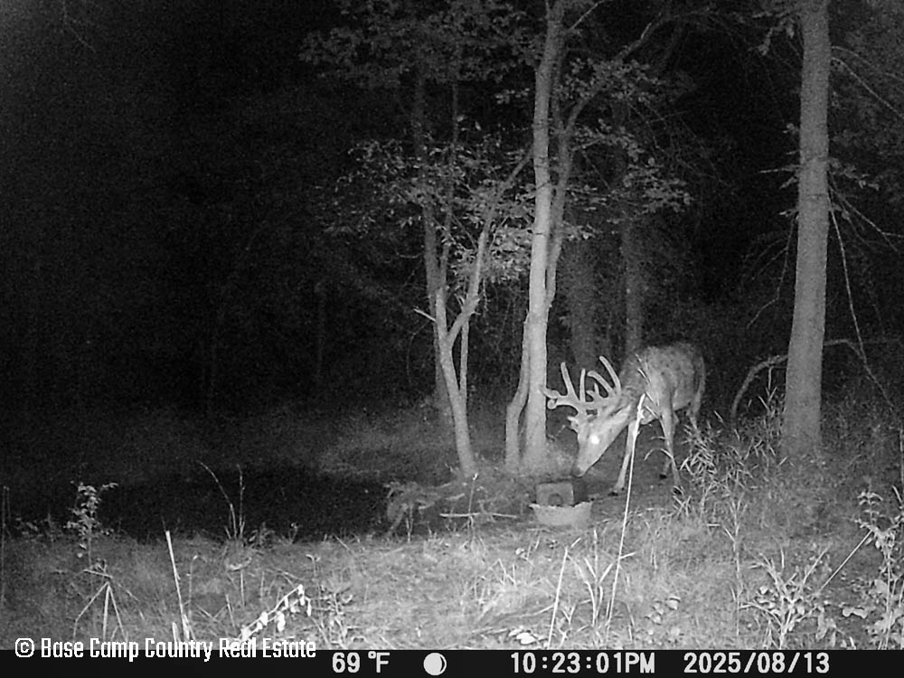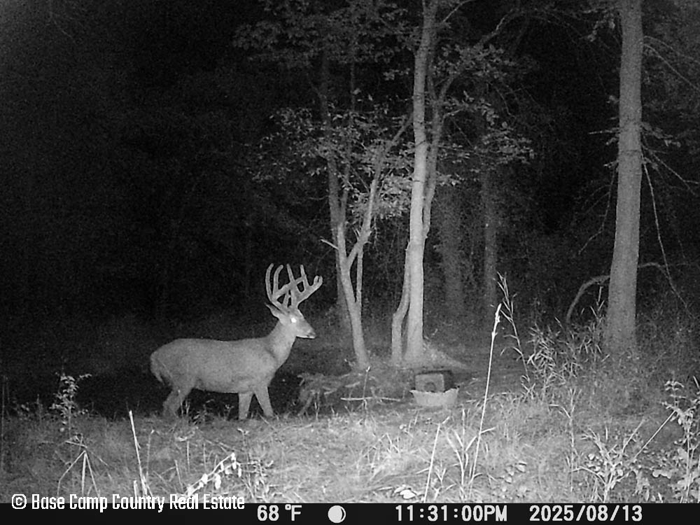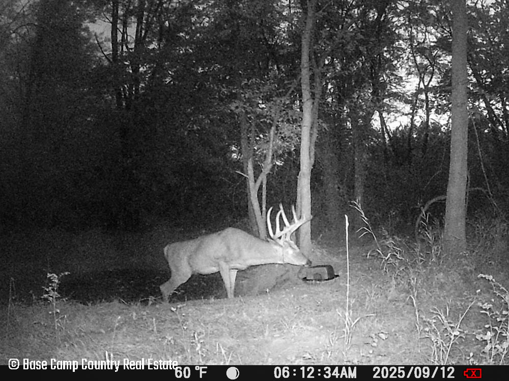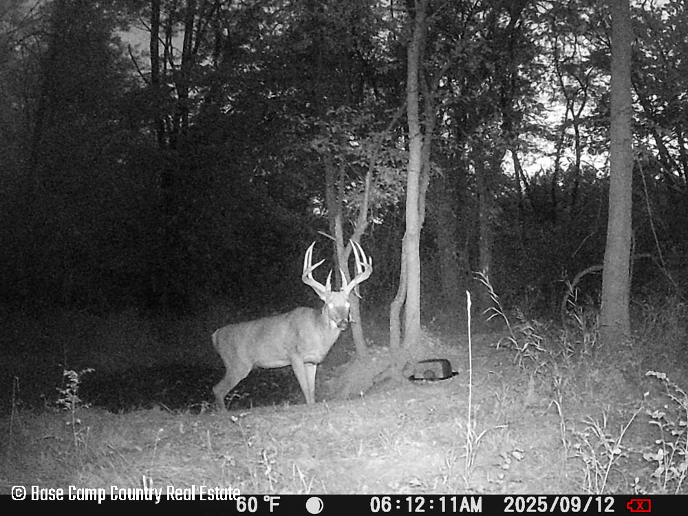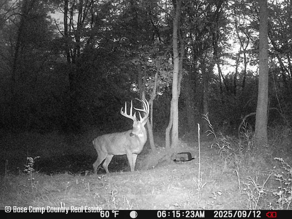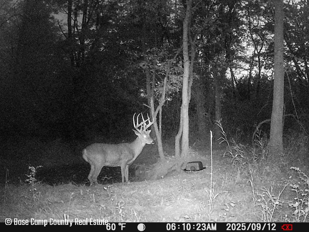 In the central part of the farm lays an unique crescent moon hay field with thick grass and alfalfa. The alfalfa presents as an opportunistic food plot during those early and mid season archery hunts. This crescent moon hay field would be ideal for a local farmer to cut hay. At the north east tip of this crescent moon field is a 1.5 acre food plot with an elevated blind. The food plot was drilled with a diverse fall food plot mix consisting of winter oats, wheat, rye, peas, radish, and crimson clover. The plot was drilled on 9/1/2025. The area is in a dry spell so with some rain the food plot will be gorgeous. This plot mix is ideal for all seasons archery into the gun seasons.