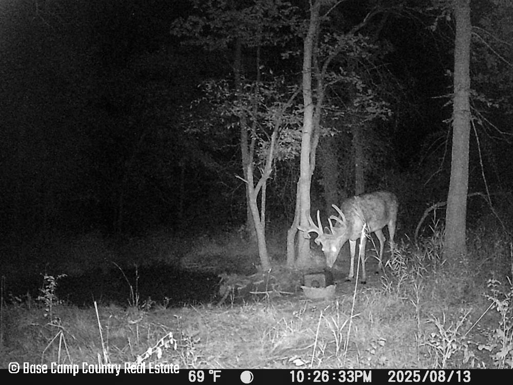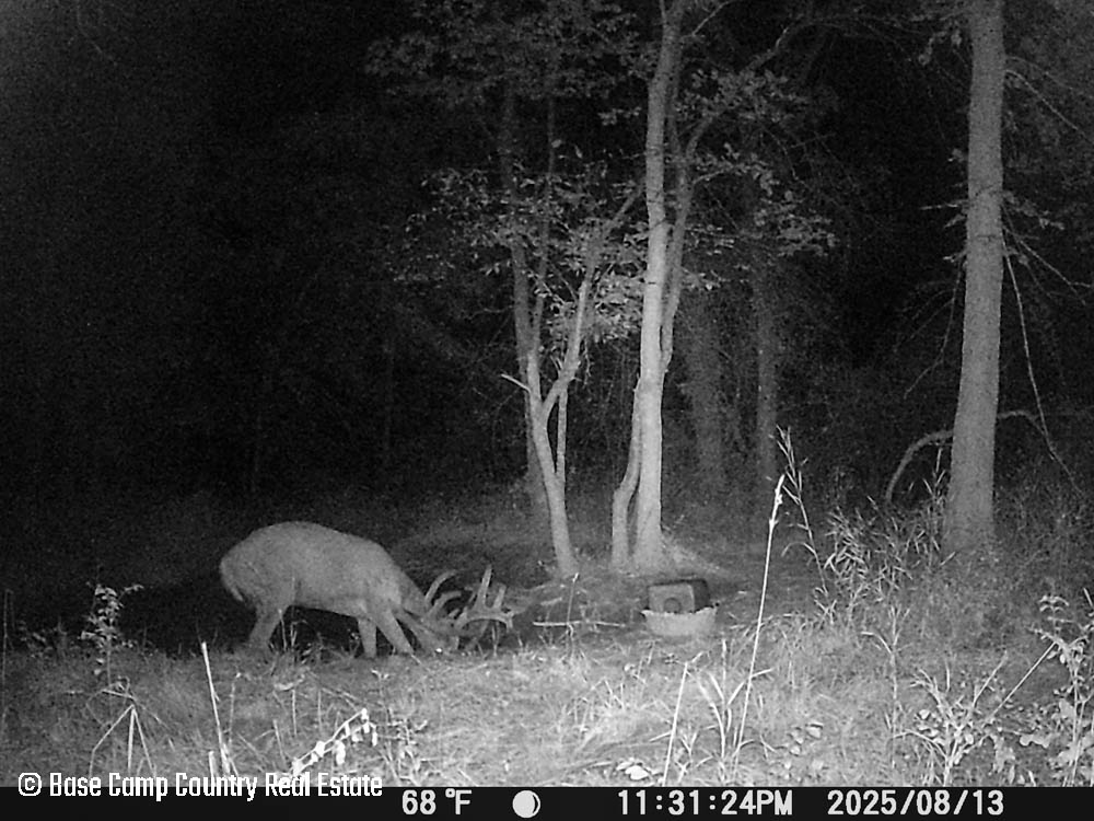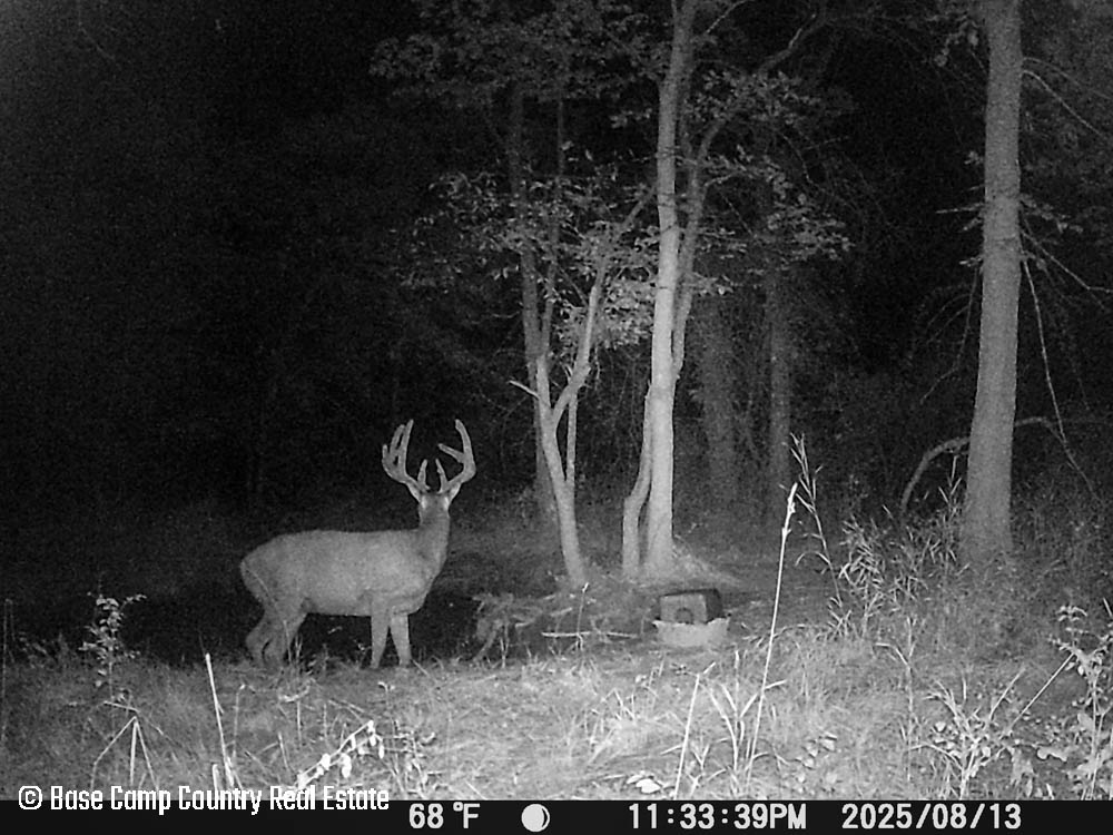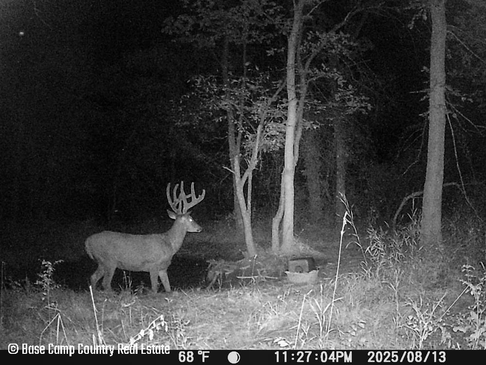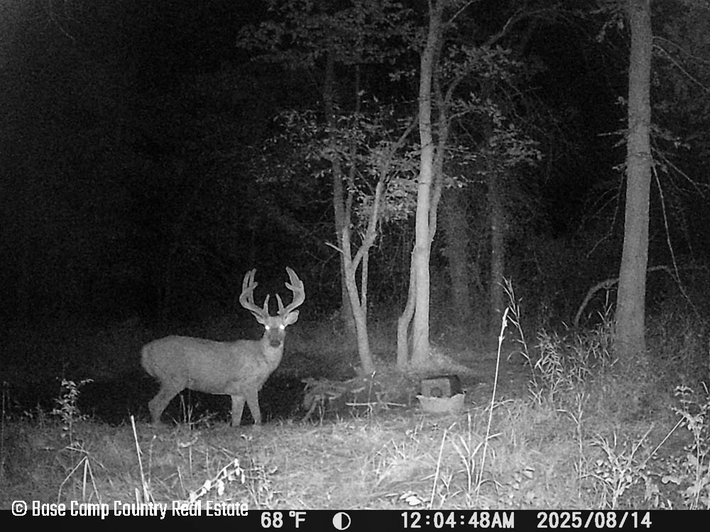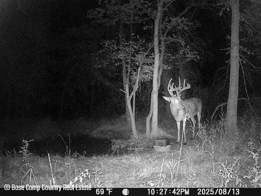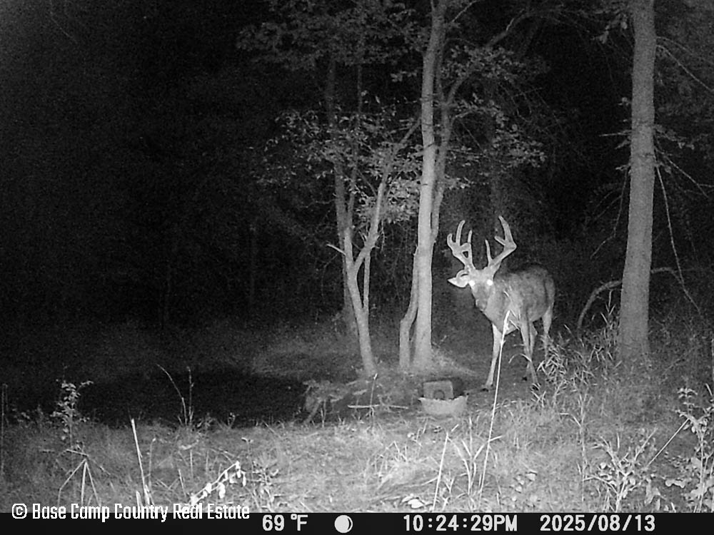 In the central part of the farm lays an unique crescent moon hay field with thick grass and alfalfa. The alfalfa presents as an opportunistic food plot during those early and mid season archery hunts. This crescent moon hay field would be ideal for a local farmer to cut hay. At the north east tip of this crescent moon field is a 1.5 acre food plot with an elevated blind. The food plot was drilled with a diverse fall food plot mix consisting of winter oats, wheat, rye, peas, radish, and crimson clover. The plot was drilled on 9/1/2025. The area is in a dry spell so with some rain the food plot will be gorgeous. This plot mix is ideal for all seasons archery into the gun seasons.