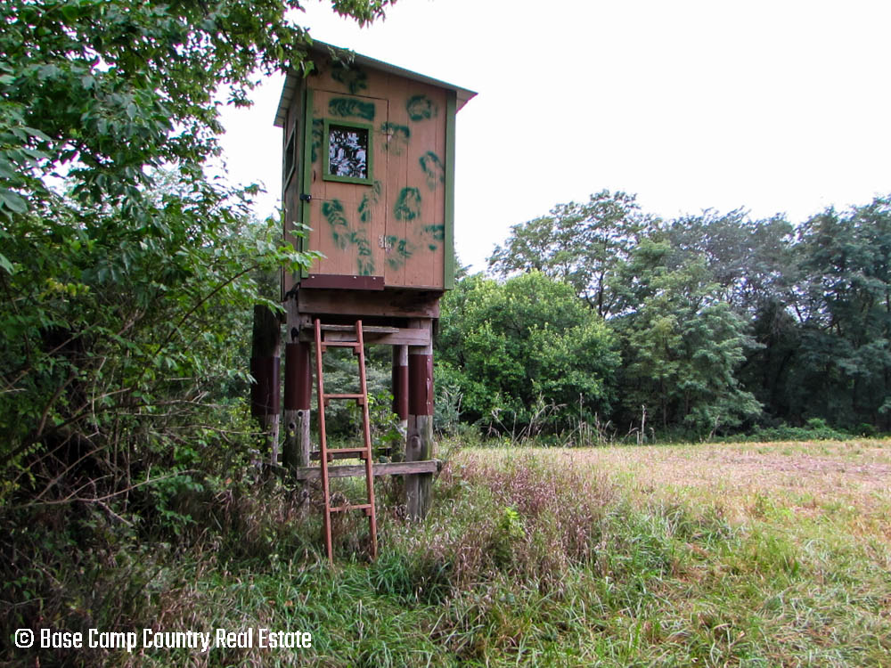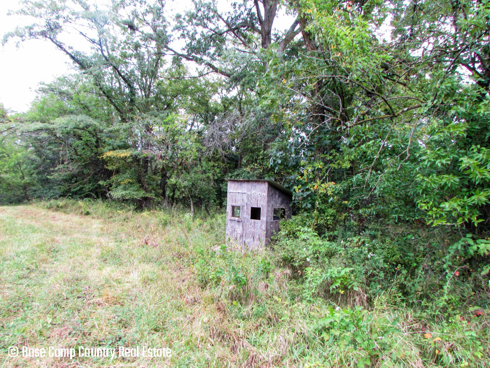 The west side of the farm has an acre field that would be an ideal food plot. The field has timber surrounding the plot, a stocked pond to the east, and a blind at the entrance of the potential plot.