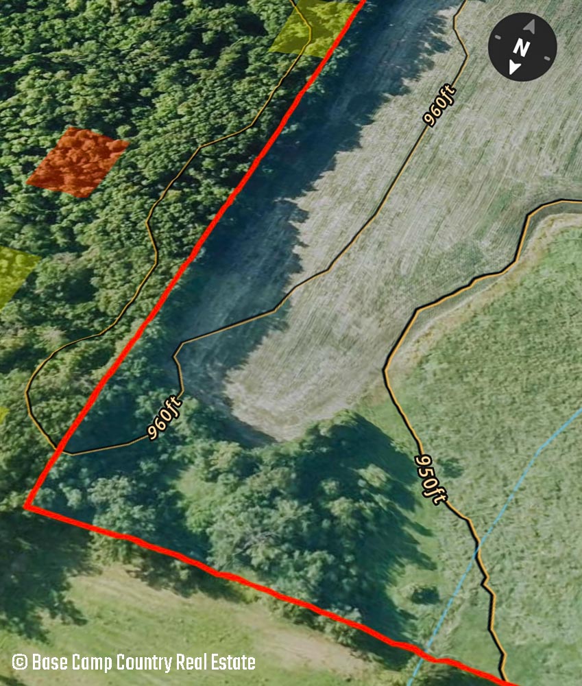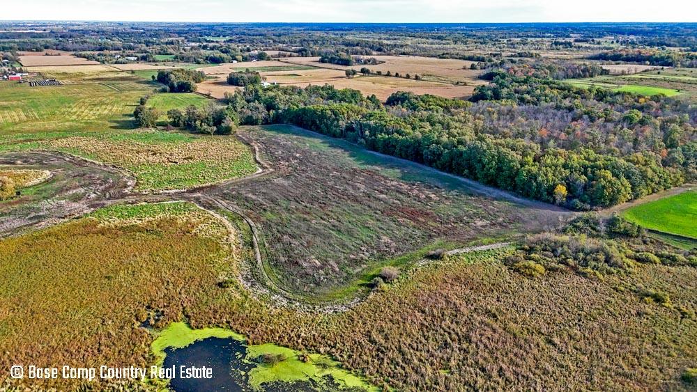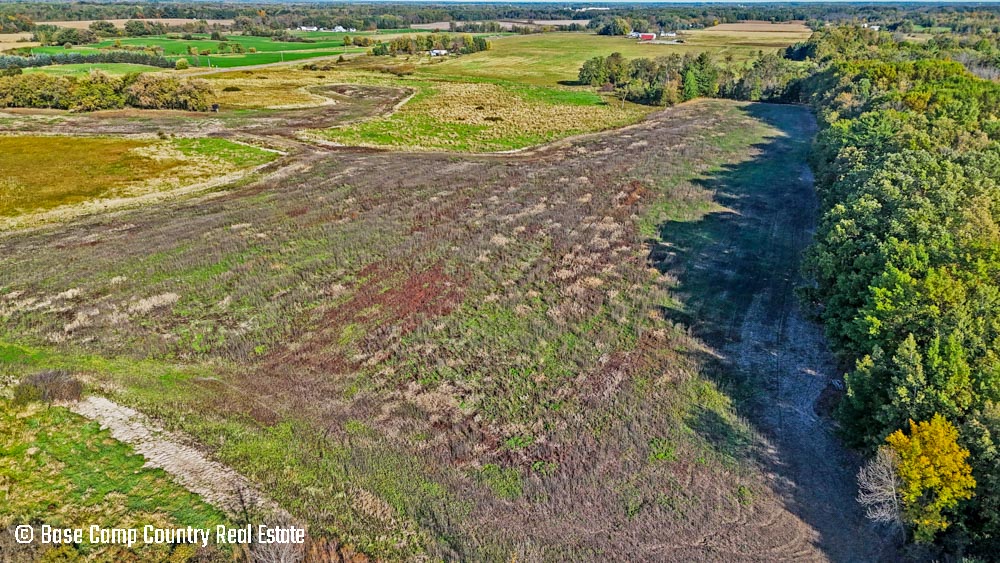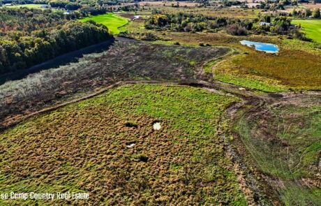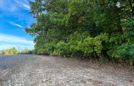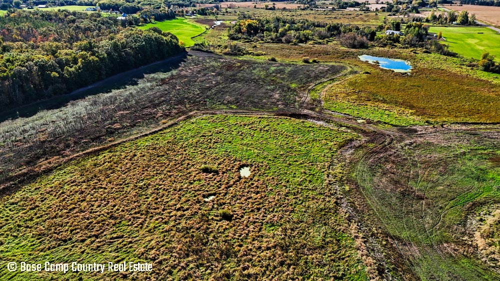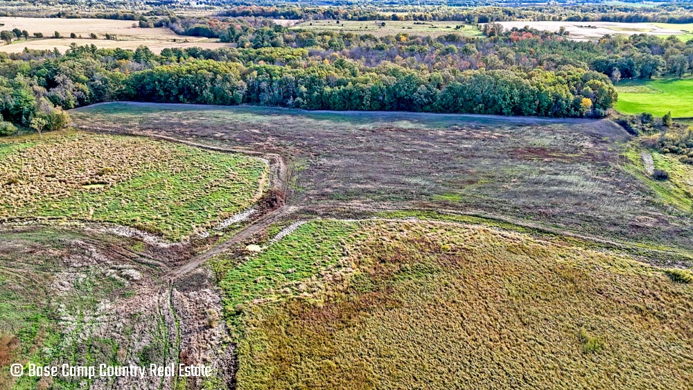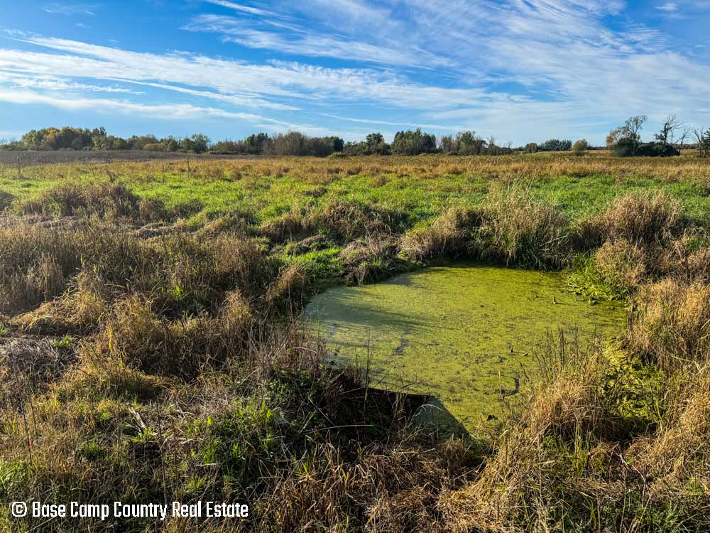From there, the land slopes gently down through wetlands and back up to additional high ground that borders a mature stand of oak trees on neighboring woods—offering great cover and edge habitat. On a recent walk-through, multiple deer were kicked up, turkeys were spotted, and pheasants flushed—this land is truly alive with wildlife.