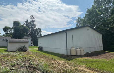 There is a 45′ x 36′ Morton Building with a loading dock that could be used for a garage or a home business. It’s fully insulated with a steel ceiling and 2 propane heaters to keep you working through the winter. There is also a small garden shed that sits next to the Morton Building to stow away your lawn mower and garden tools.