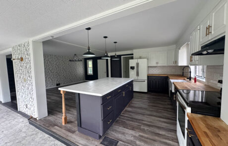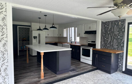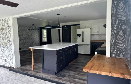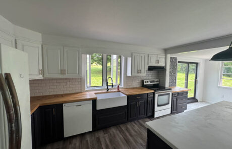 Butcher block counter tops, with barn sink