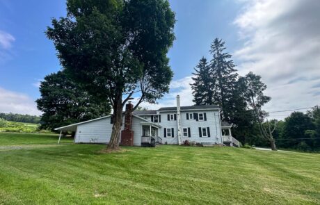 Livingston County, New York – Land For Sale | If you’re looking for your own private escape, in the country, this large farmhouse has a lot to offer. Built in 1960 and situated on nearly 5 acres, this house has gone through many updates to improve upon the nearly 3,000 square feet of living space. The entire first floor has been updated with luxury vinyl plank flooring. A huge open floor plan on the first floor connects the eat-in kitchen to another dining area. There is a large living room area, along with 2 large bonus rooms on the first floor. One room having a built-in fireplace, that would be perfect to settle into on a cold winter day. The second floor has 4 bedrooms in total, 3 of which have recently been updated with carpet. The large master bedroom also has vinyl flooring and a cozy electric fireplace that’s built into a custom mantel.