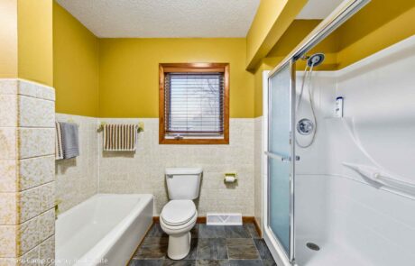 The basement includes a second bathroom with a standing shower, sink, and toilet, along with finished living space and storage. An attached garage and practical layout complete this move-in ready home located in a desirable Harlan neighborhood. Closing would occur on or after April 13th.