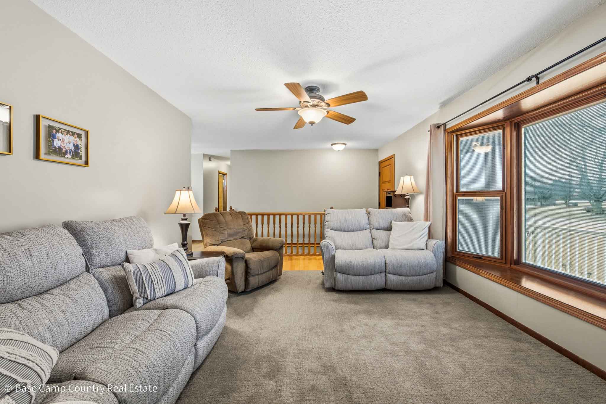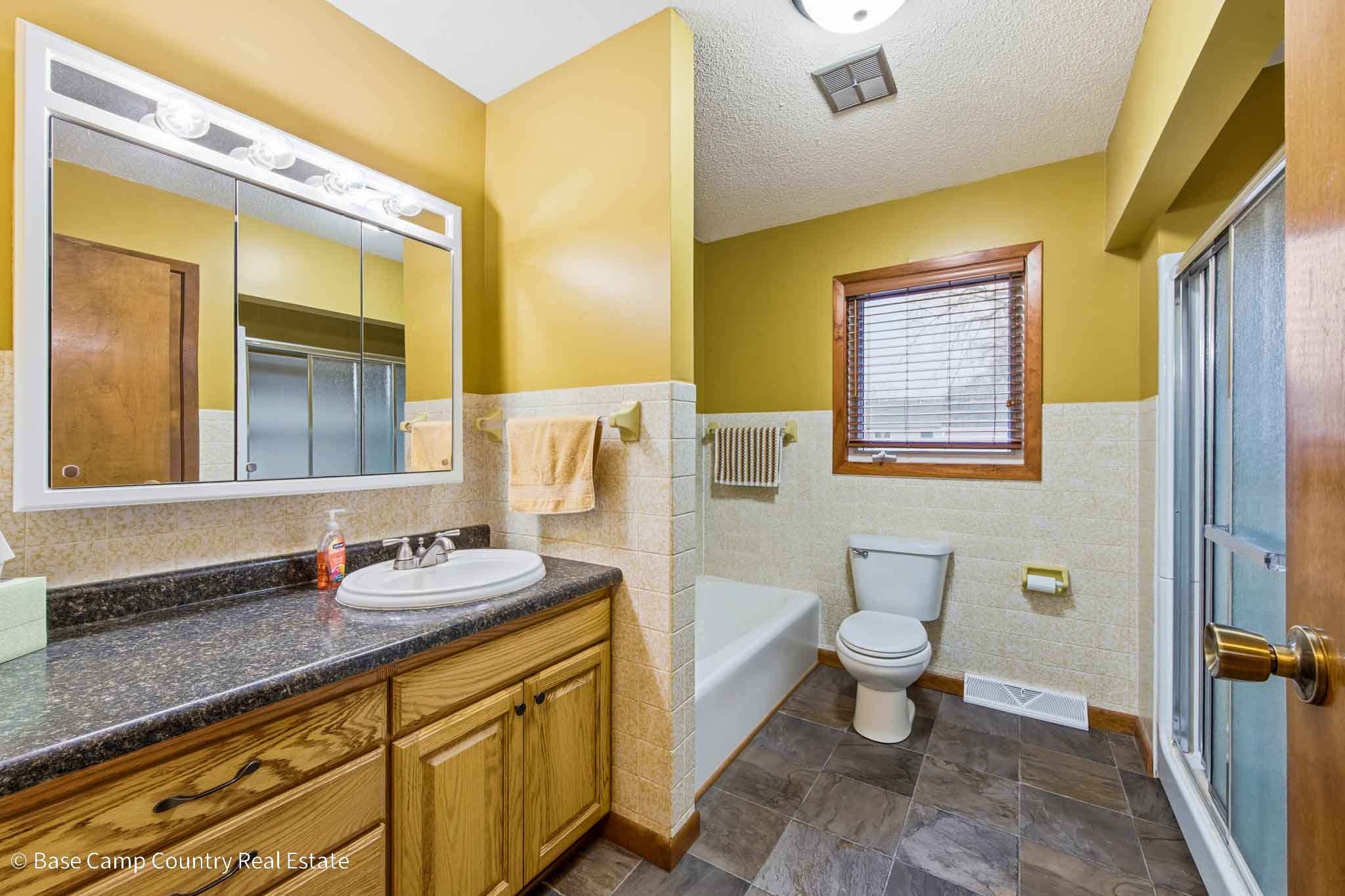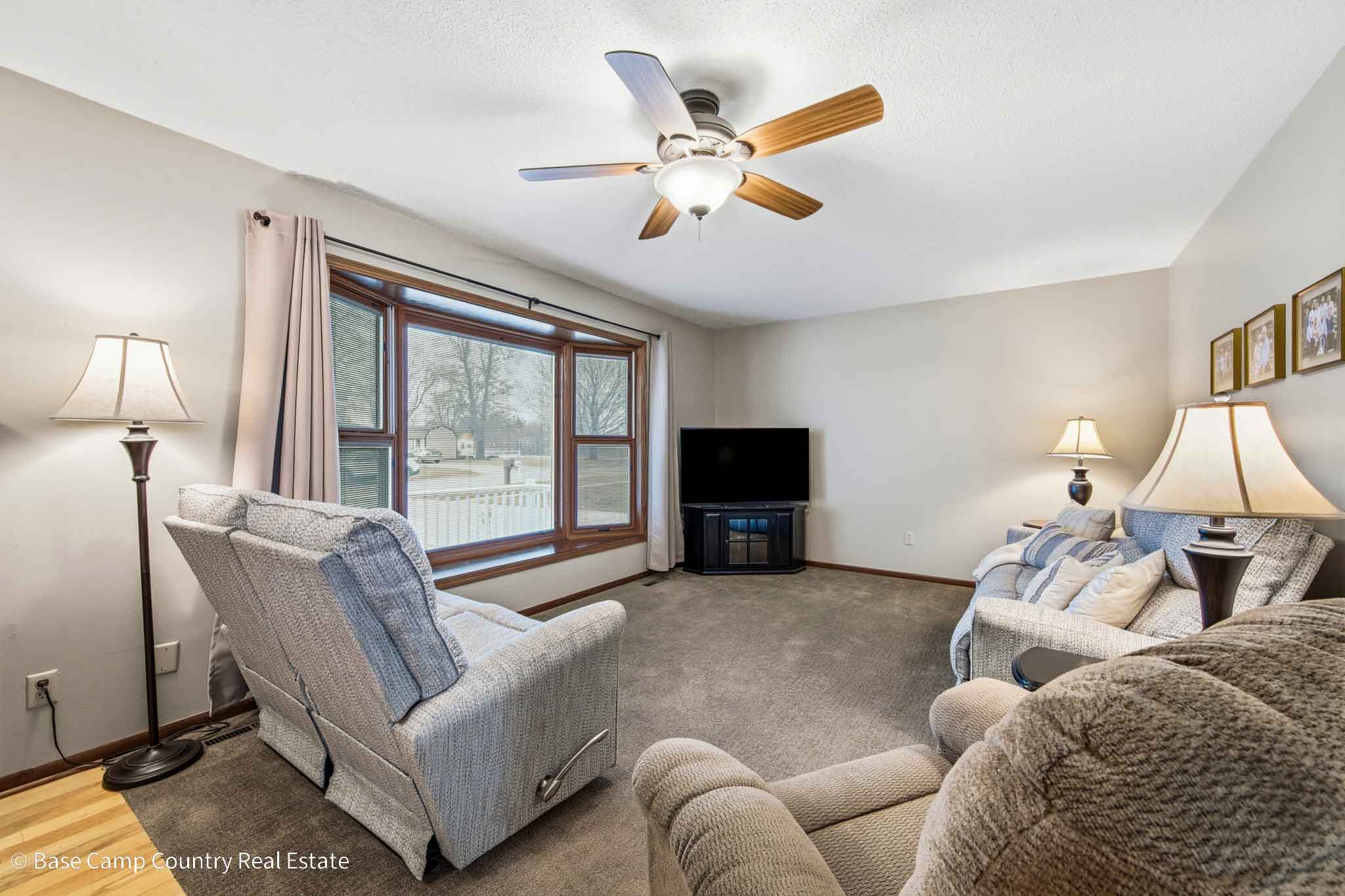 The basement includes a second bathroom with a standing shower, sink, and toilet, along with finished living space and storage. An attached garage and practical layout complete this move-in ready home located in a desirable Harlan neighborhood. Closing would occur on or after April 13th.