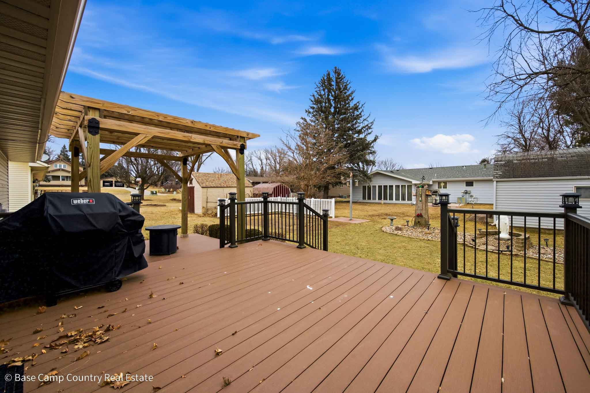 Recent updates include a Class 4 asphalt roof installed in 2024 and a composite deck with pergola added in 2023, providing a low-maintenance outdoor living space. The yard features attractive landscaping and is easy to care for, and a utility shed provides convenient additional storage.