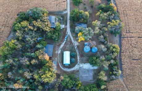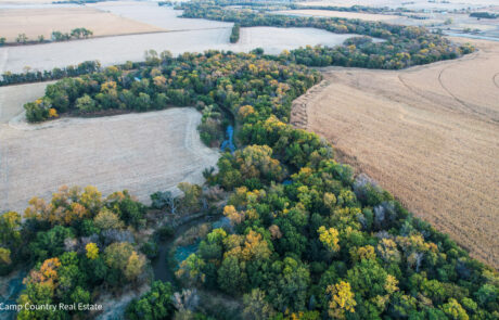 Beyond farming, the land includes roughly 40 acres of prime recreational space, offering excellent deer, turkey, and small game hunting, as well as fishing in the Blue River, which runs through the property.