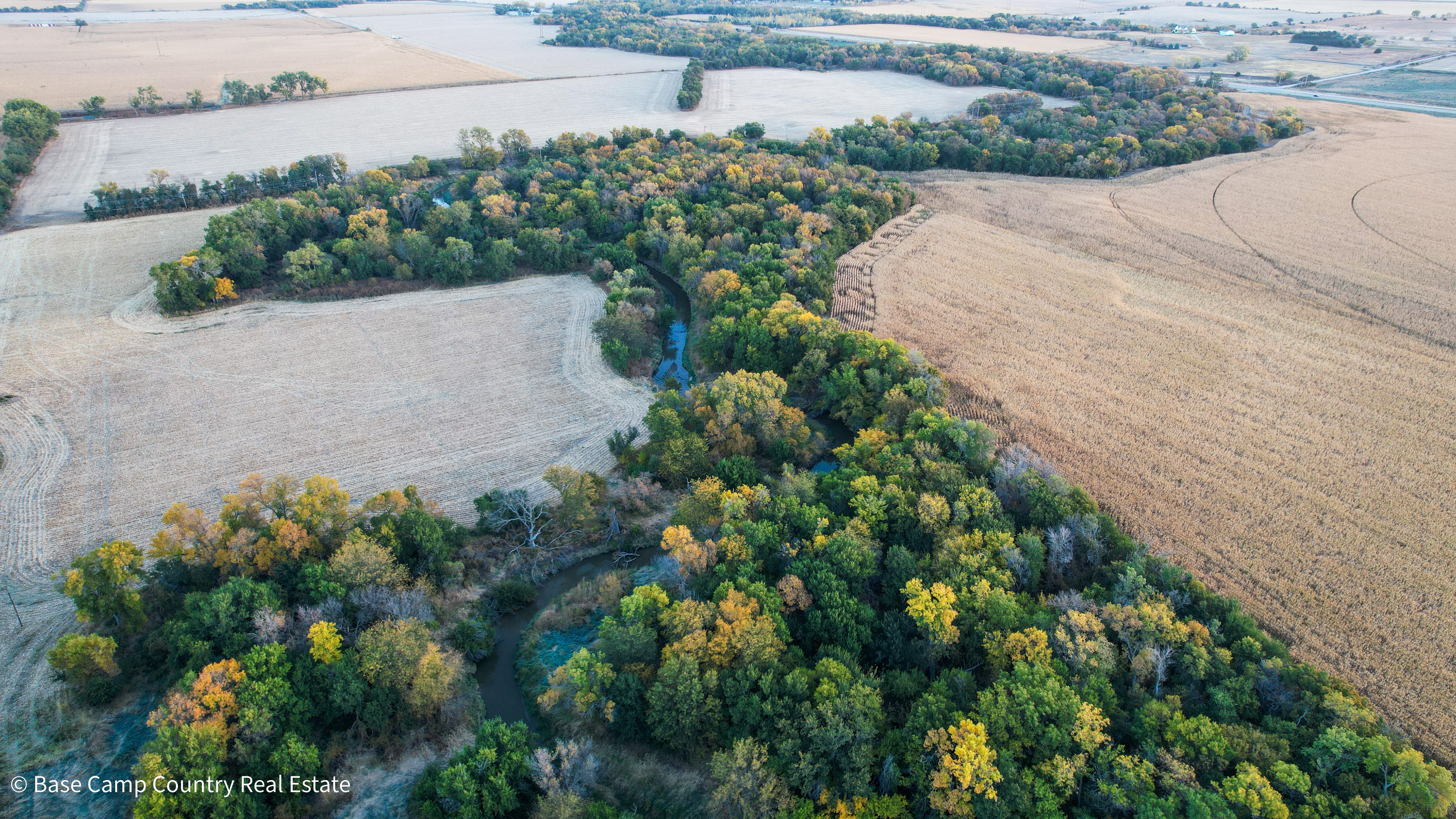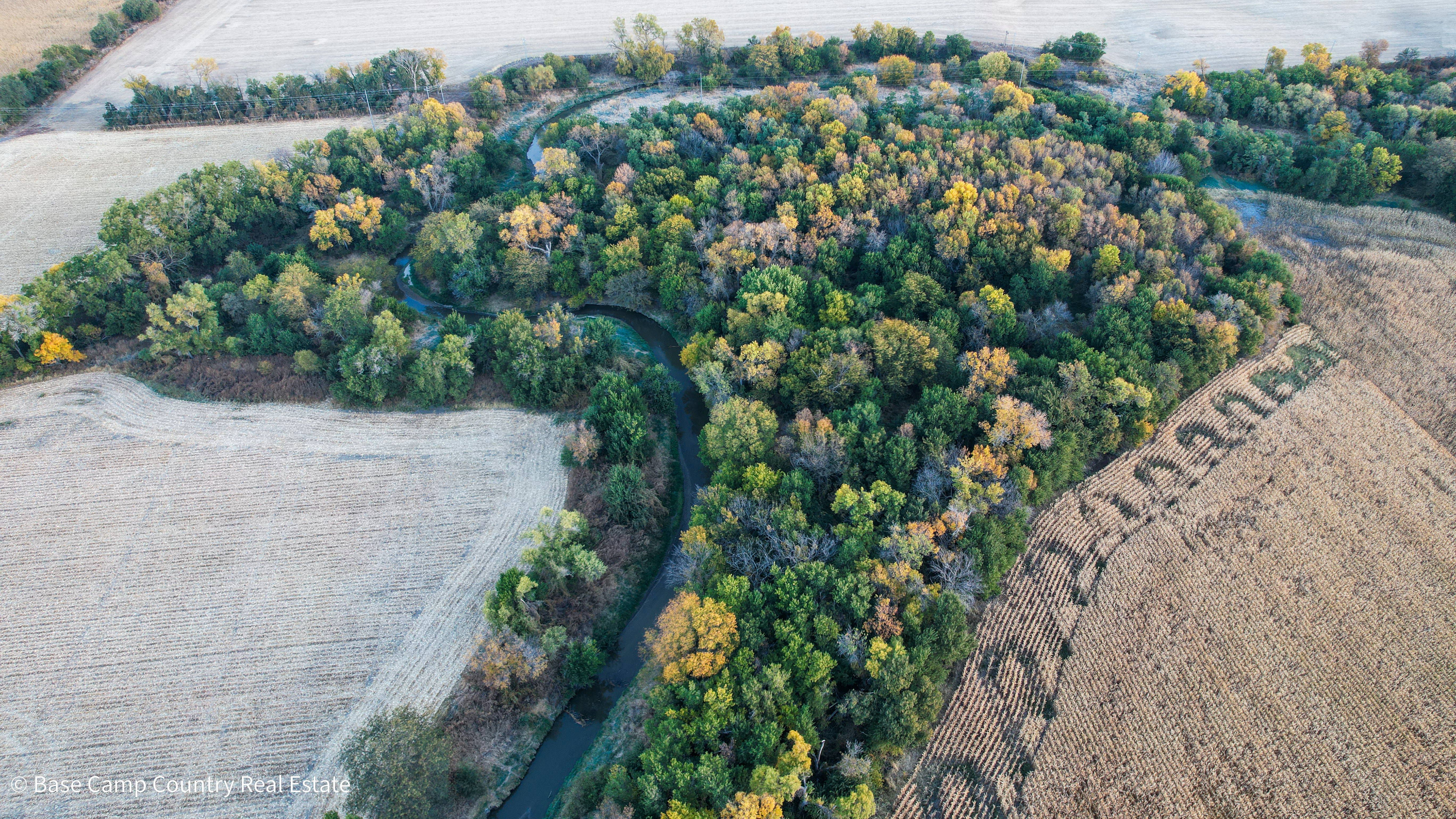 Beyond farming, the land includes roughly 40 acres of prime recreational space, offering excellent deer, turkey, and small game hunting, as well as fishing in the Blue River, which runs through the property.