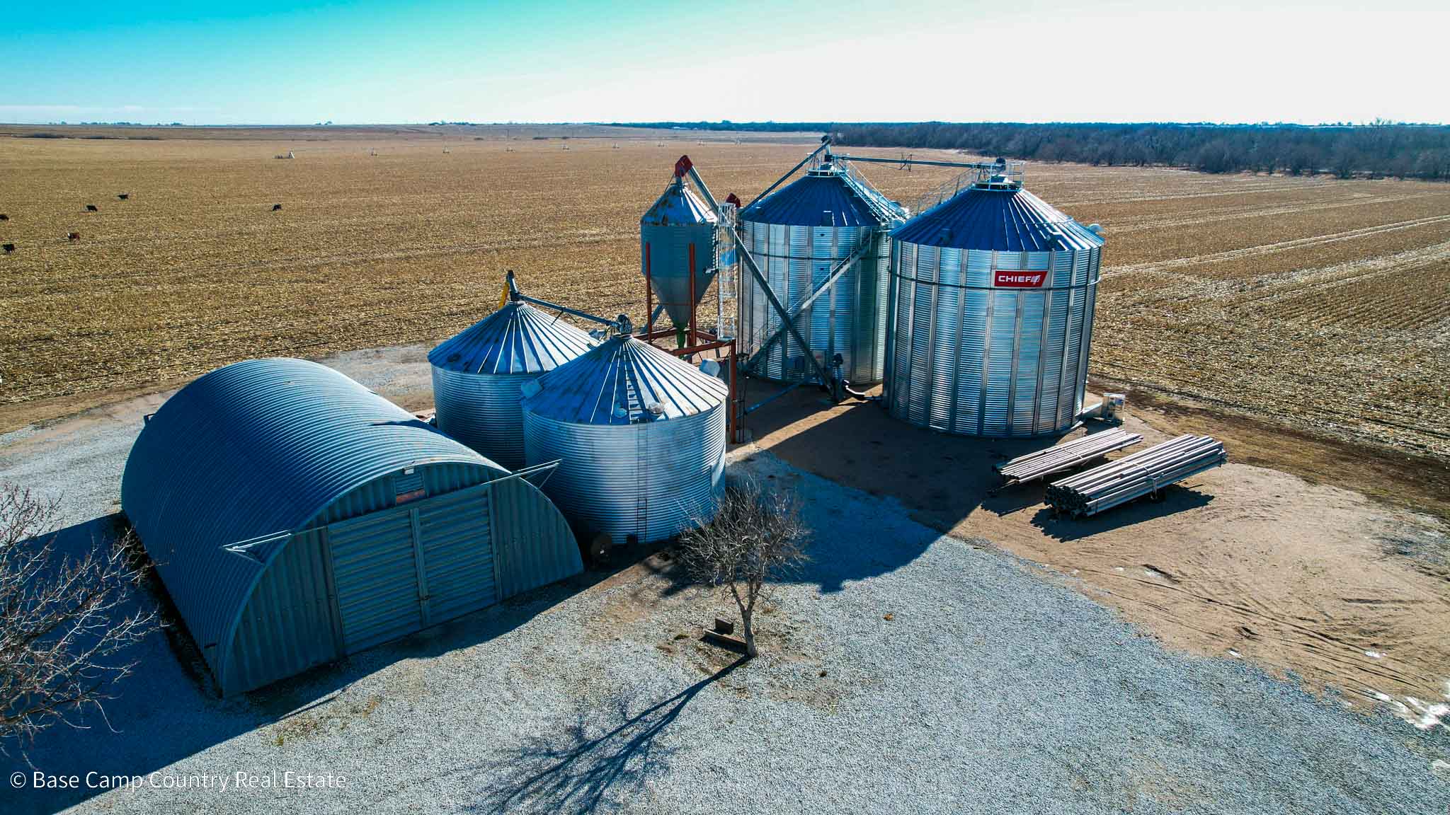 The improvements on this property truly set it apart. Multiple outbuildings provide excellent storage and utility, including a detached 18’ x 16’ garage, a 36’ x 48’ Quonset, and a 60’ x 40’ Quonset—ideal for equipment, shop space, or storage. The on-site grain facility adds significant value, featuring four grain bins with a total capacity of approximately 80,000 bushels. Two nearly new Chief bins (31,000 bushels each) are just three years old, complemented by two additional 9,000-bushel bins.